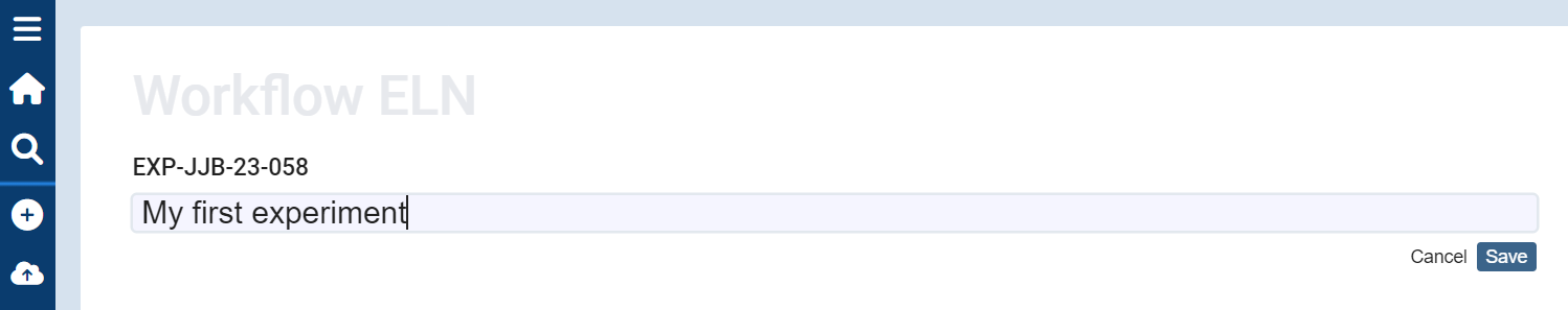 The experiment title can be edited by double-clicking the + Add title placeholder text or clicking on the pencil icon that appears when hovering the mouse cursor over the title, and after editing, the Save button is clicked.