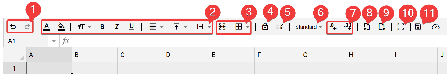 - Save – The Spreadsheet section will automatically save after ~10 seconds, but you can manually save as well.