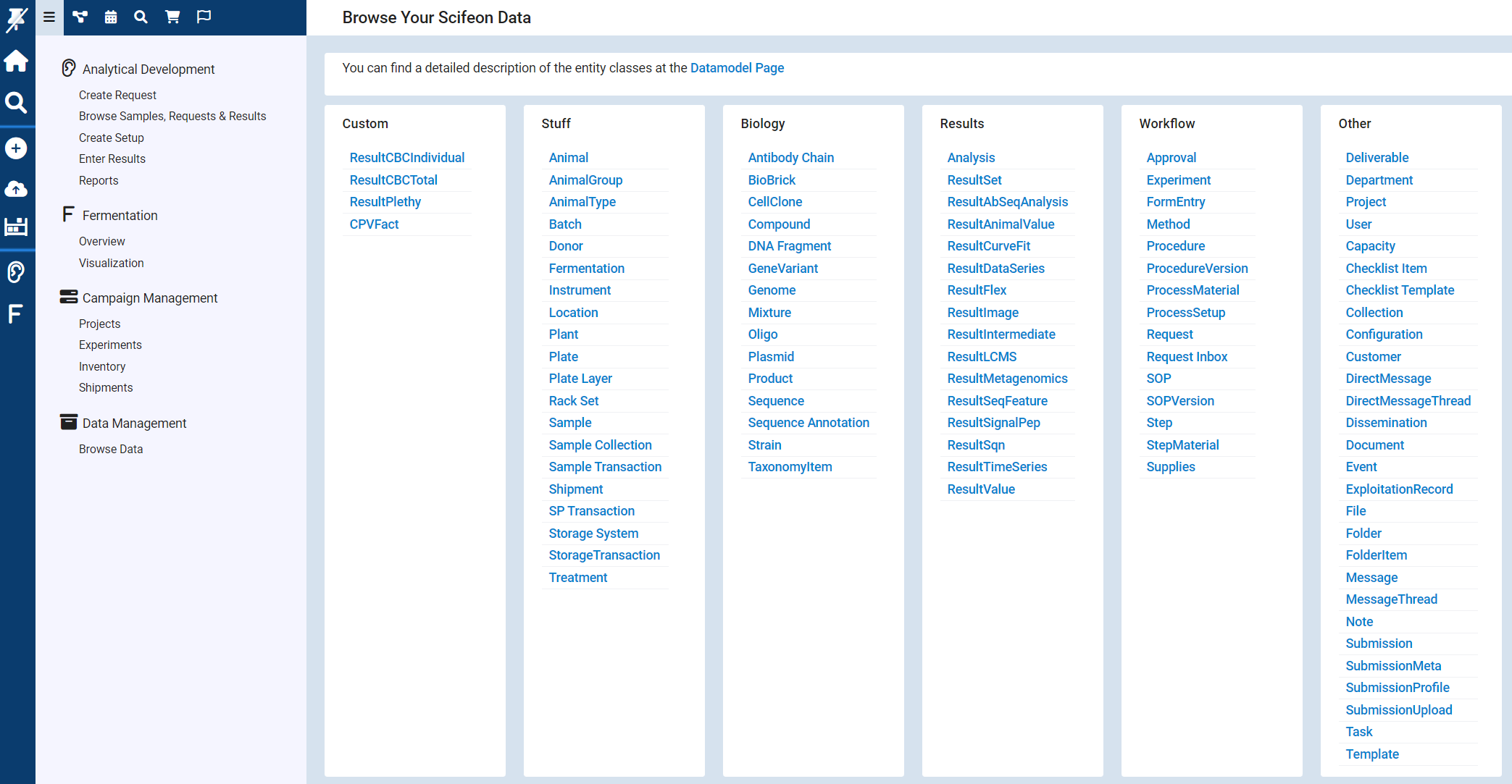 - Workflow - This is representing workflow data, such as experiments, steps, procedures, etc.