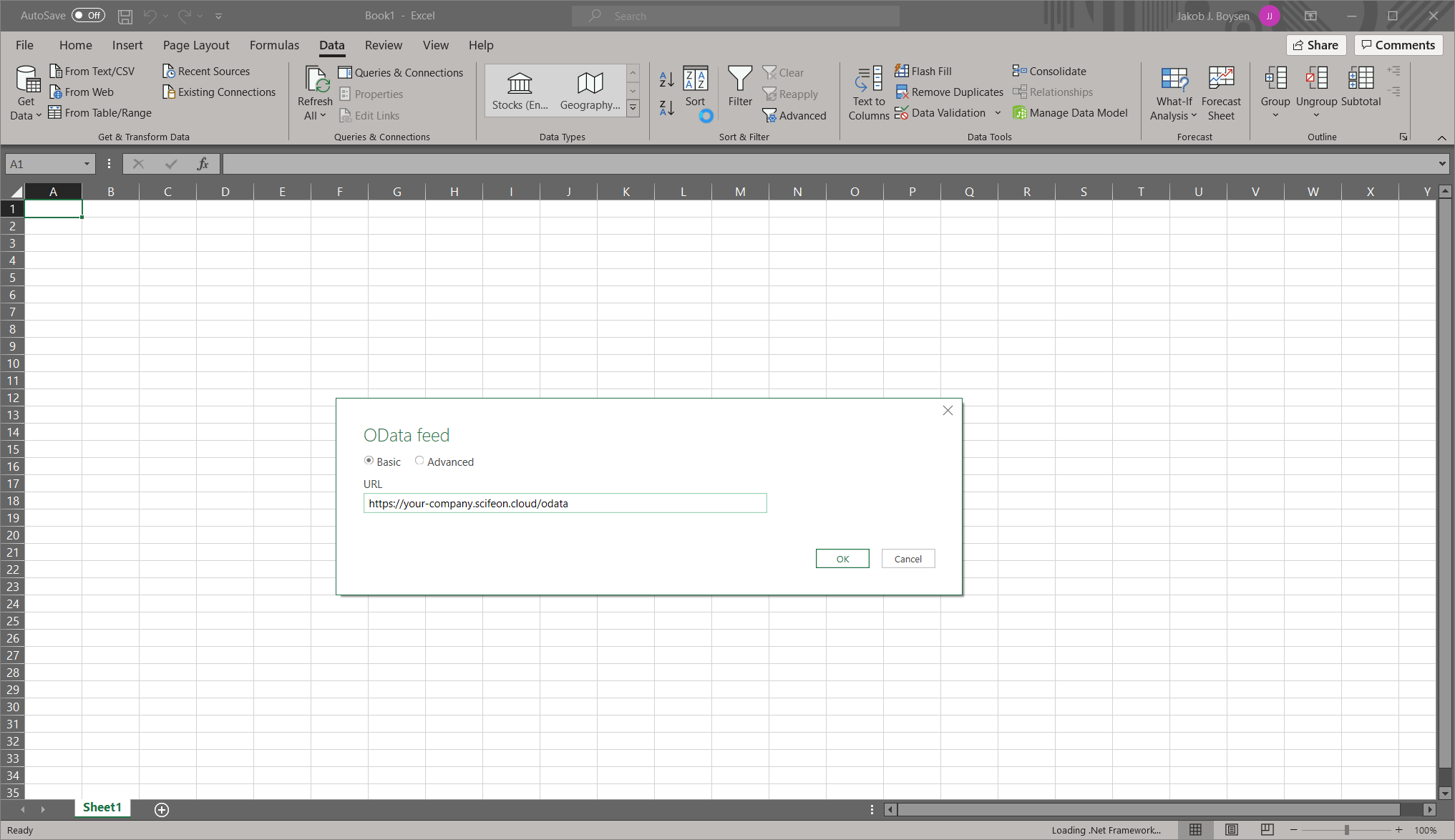 Enter the Scifeon OData URL for your company, e.g. https://your-company.scifeon.cloud/odata