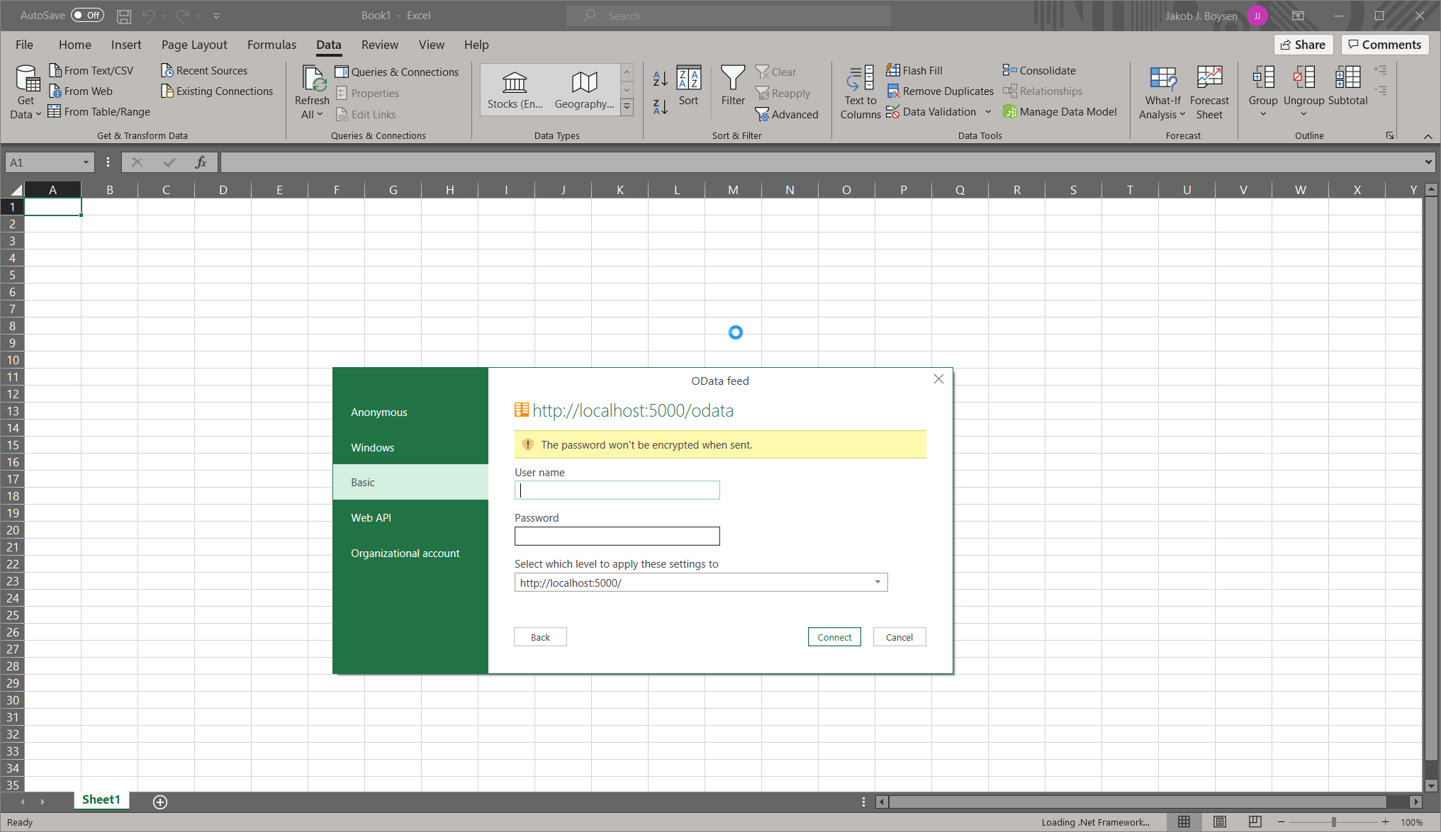 Select Data > Get Data > From Other Soruces > From OData Feed:
