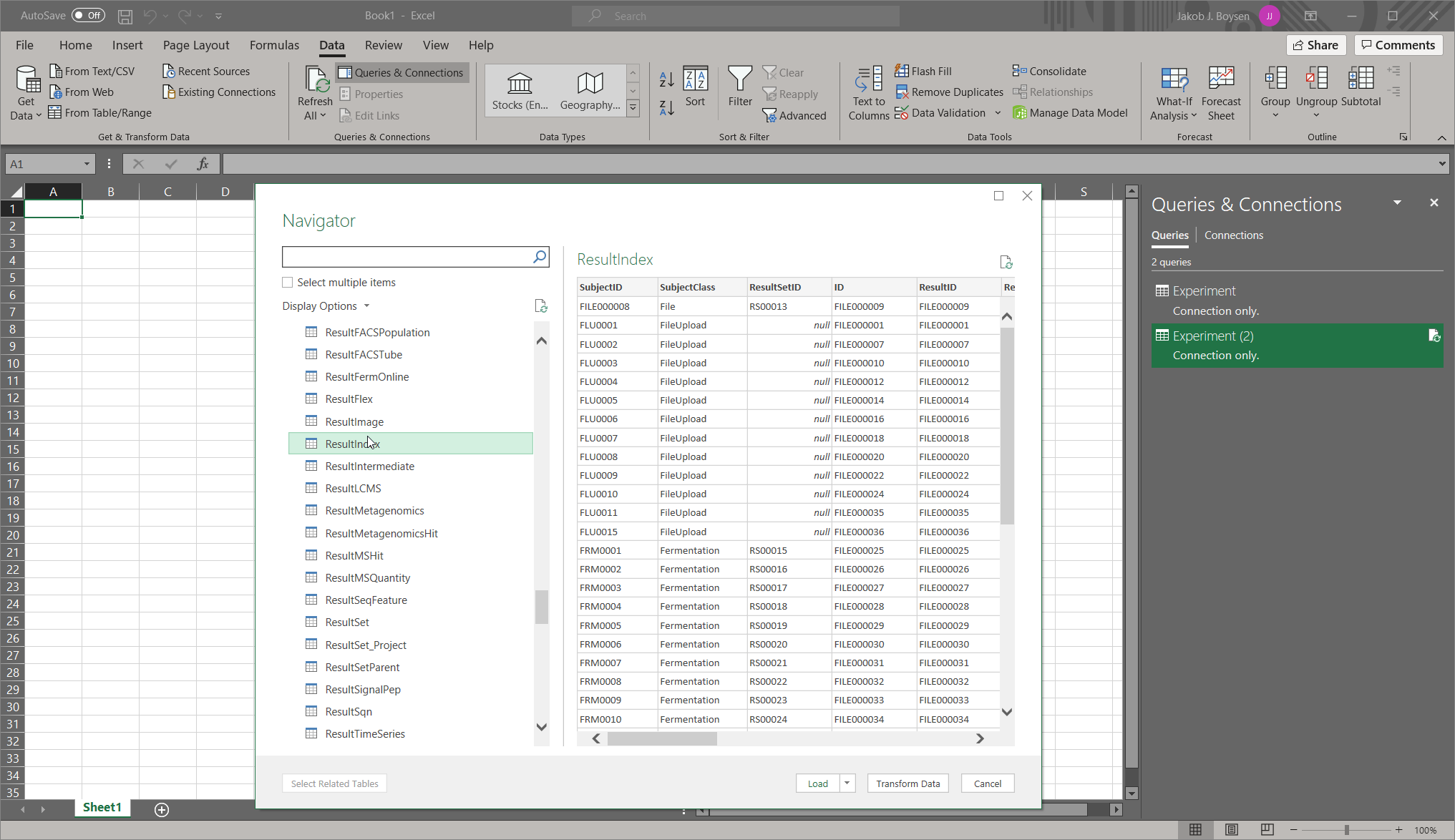 After you've clicked "Load" you will see a new sheet in the Excel workbook containing the data from Scifeon: