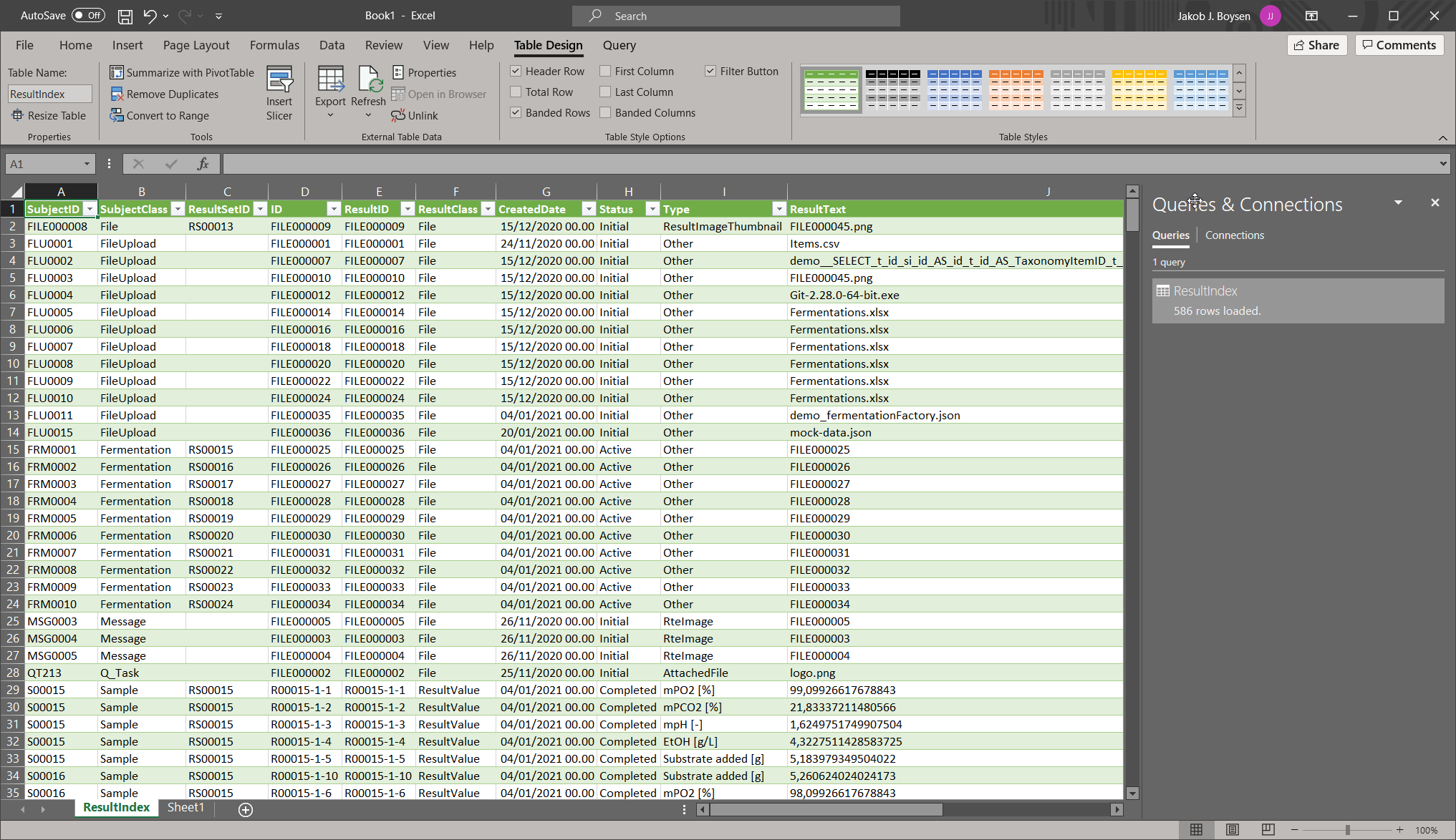 Scifeon offers an OData interface for interacting with data from Scifeon in other applications, e.g. Excel. A few steps is needed in order to retrieve data from Scifeon in Excel: