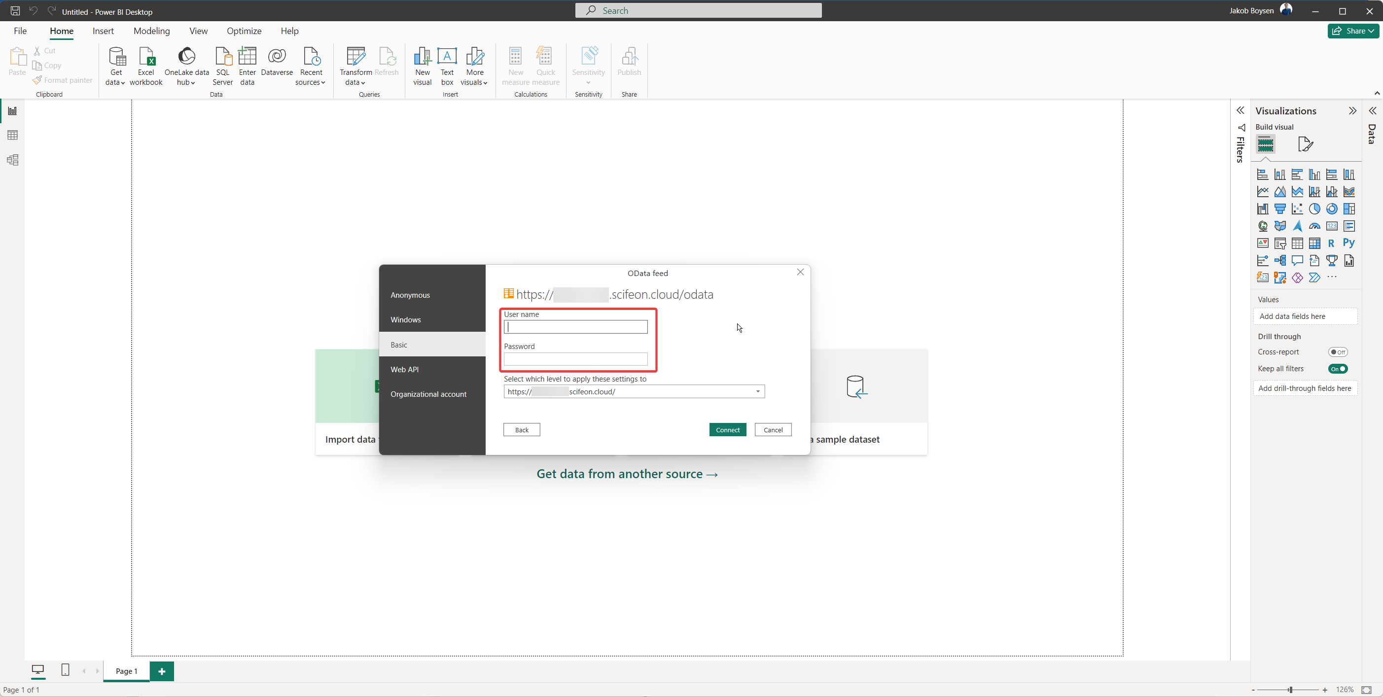 Scifeon offers an OData interface for interacting with data from Scifeon in other applications, e.g. PowerBI. A few steps is needed in order to retrieve data from Scifeon in PowerBI: